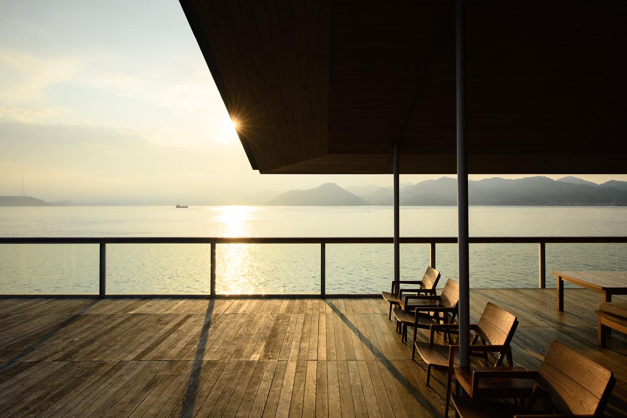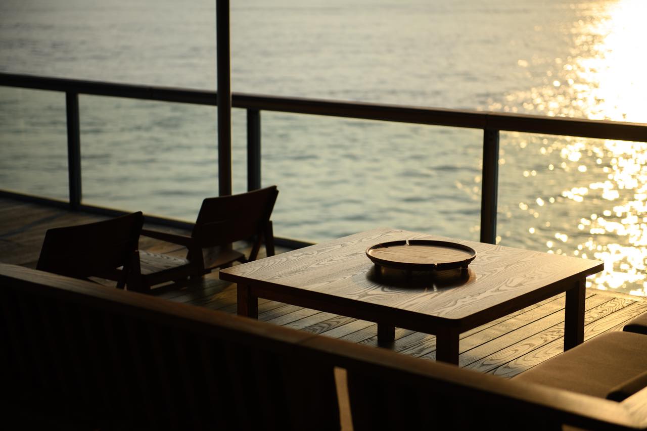 For instance, on the veranda, guests can fully appreciate the charm of the serene Seto Inland Sea. Designed at a height where guests, when seated, can directly see the sea instead of through glass. Rather than viewing the sea from the town, it’s about gazing at the sea while floating upon it. This space is designed to maximize that experience. The sea changes its scenery with the seasons, time of day, and weather. Indeed, facing the sea in its unique moments is the essence of the Guntu experience.