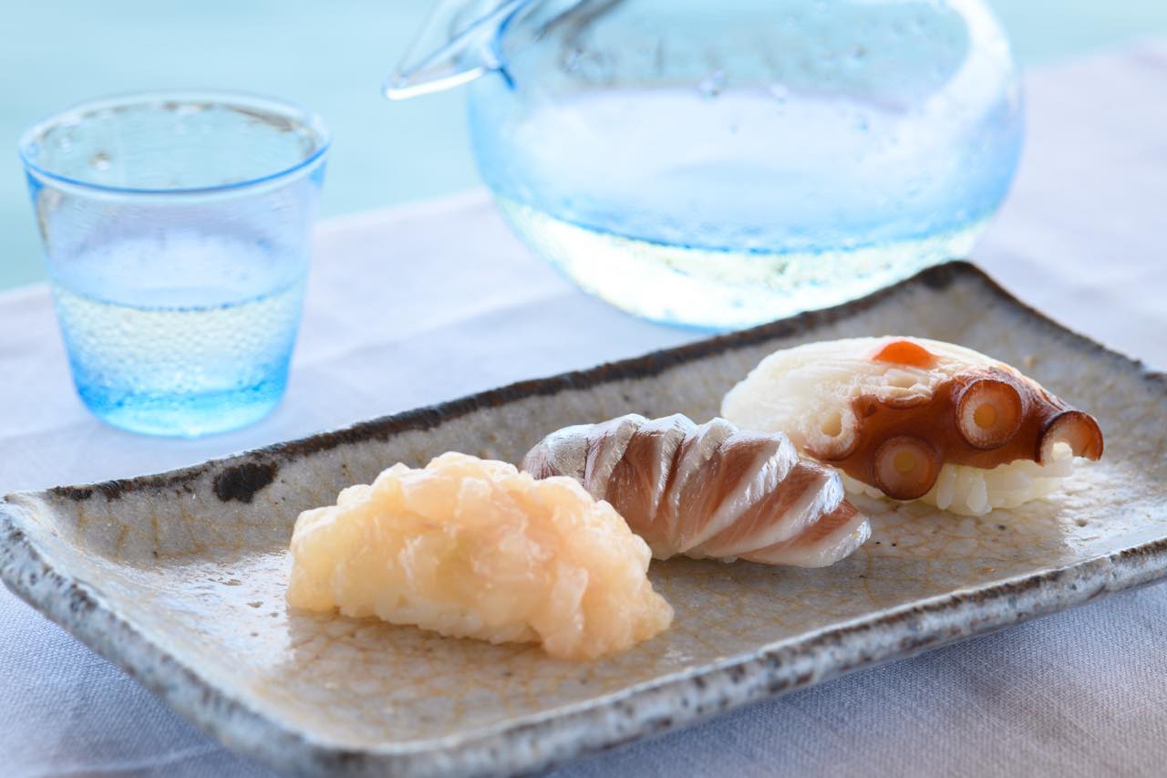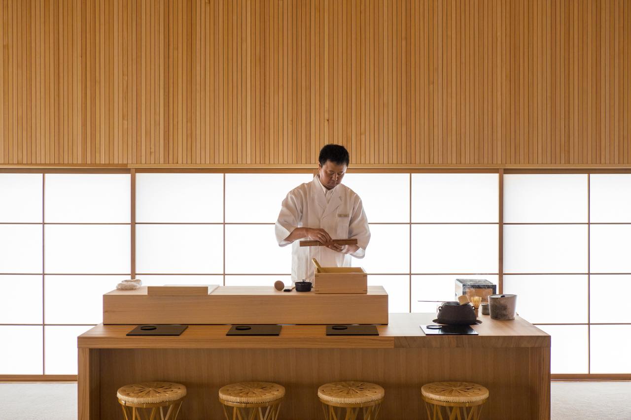 At the sushi counter, guests can enjoy sushi supervised by Nobuo Sakamoto from “Watarai” on Awaji Island. In the lounge, traditional Japanese sweets supervised by Seiichiro Kita from “Kashiya” in Nara are prepared right in front of you. It’s a dreamlike parade of Japanese cuisine.