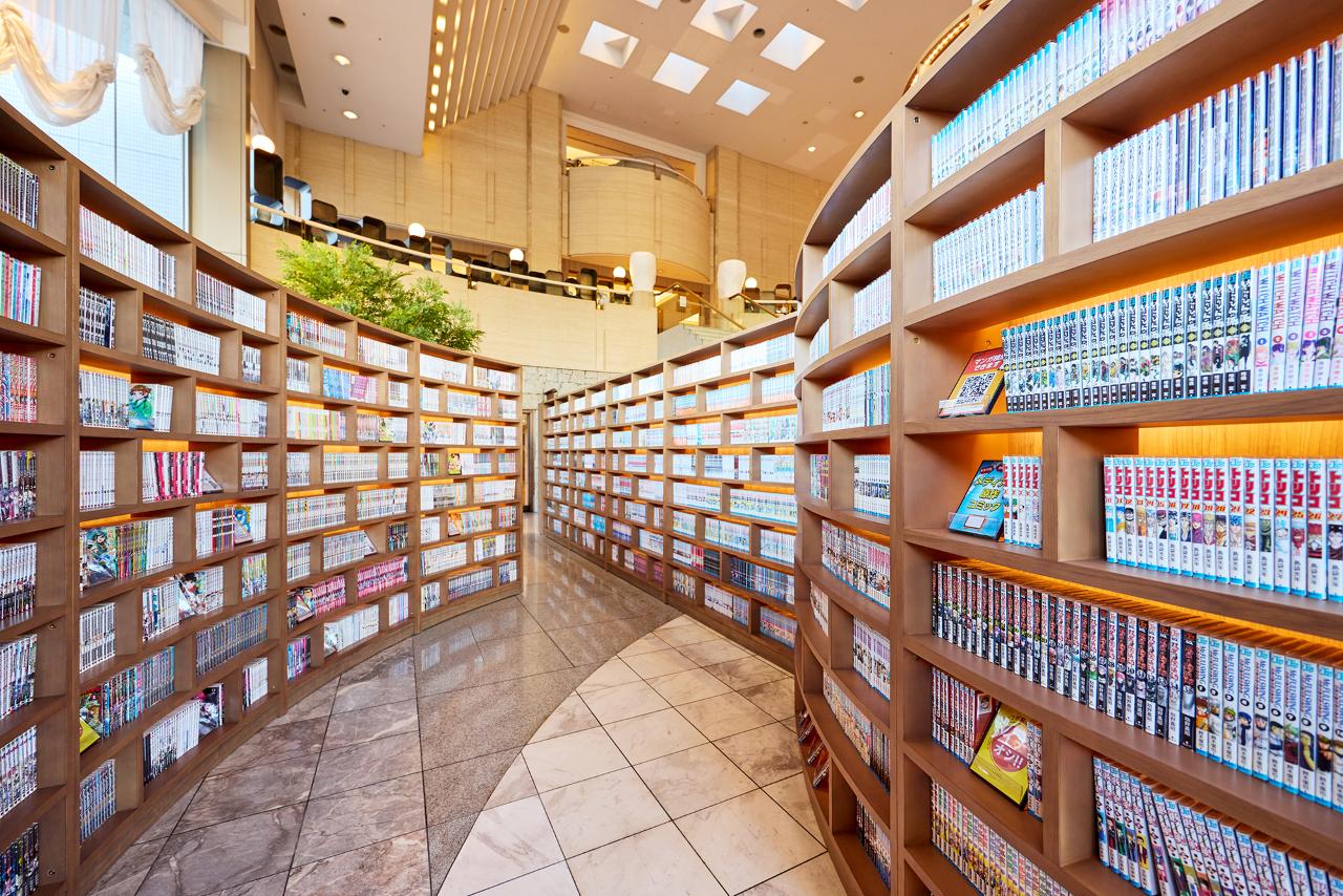 大きな窓から差し込む柔らかな自然光に、ゆったりと優しく包み込まれるラウンジ空間。温かみのあるインテリアとスタイリッシュなデザインが、ほっと落ち着いたひと時を演出している。ここの魅力はなんといっても、迷路のように立ち並ぶブックシェルフ。日本語・英語・中国語の3言語で展開された25,000冊のコミックや書籍は、ワクワク感と知的好奇心を高めてくれるだろう。
