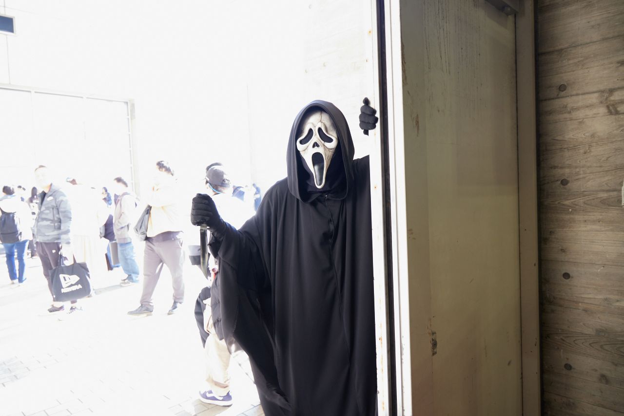 一緒に写真を撮ったり、同じ作品の話題で盛り上がったり、初対面同士でも共通の趣味でつながる瞬間が何度も見られた。ちなみに『スクリーム』の彼は、通路にじっと立ち、通る人をその都度びっくりさせている。