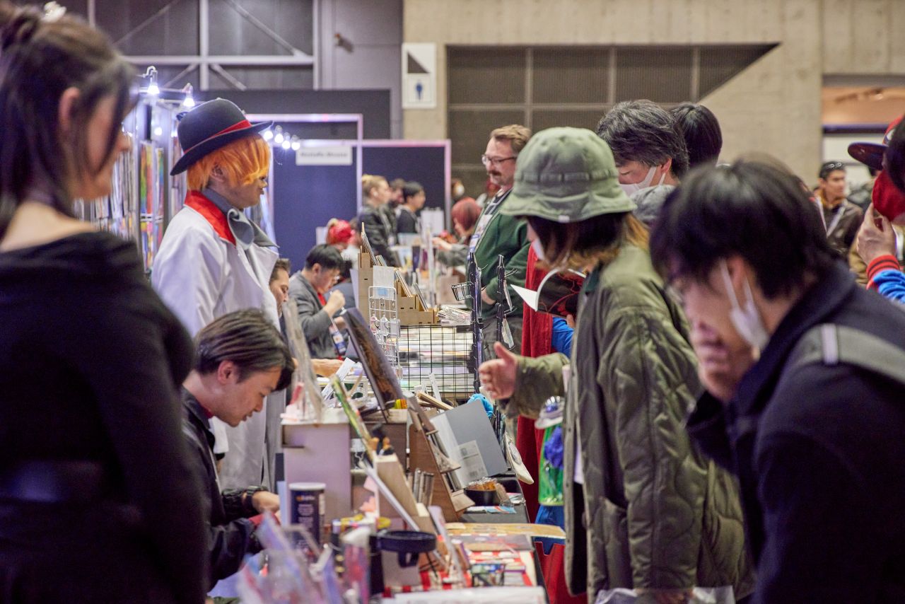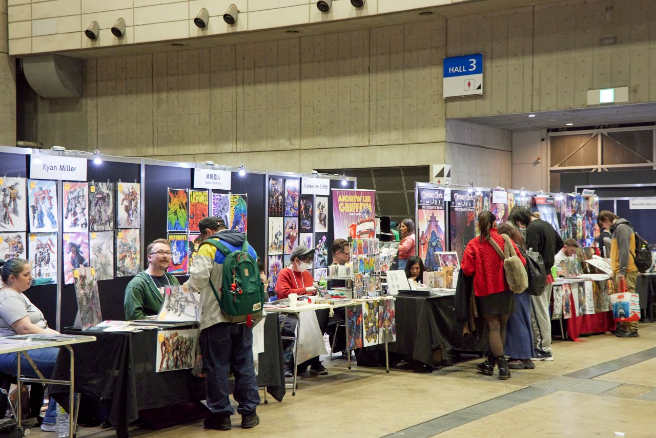 東京コミコンで、ぜひ足を運んでほしいエリアが「アーティスト・アレイ」だ。ここはプロ・アマを問わず、世界中のイラストレーターや造形作家、コミックアーティストたちが自作の作品を直接展示・販売するスペース。コミケなどに馴染みのない人にとっては、少し敷居が高く感じるかもしれないが、実際に歩いてみるとその印象はすぐに変わる。