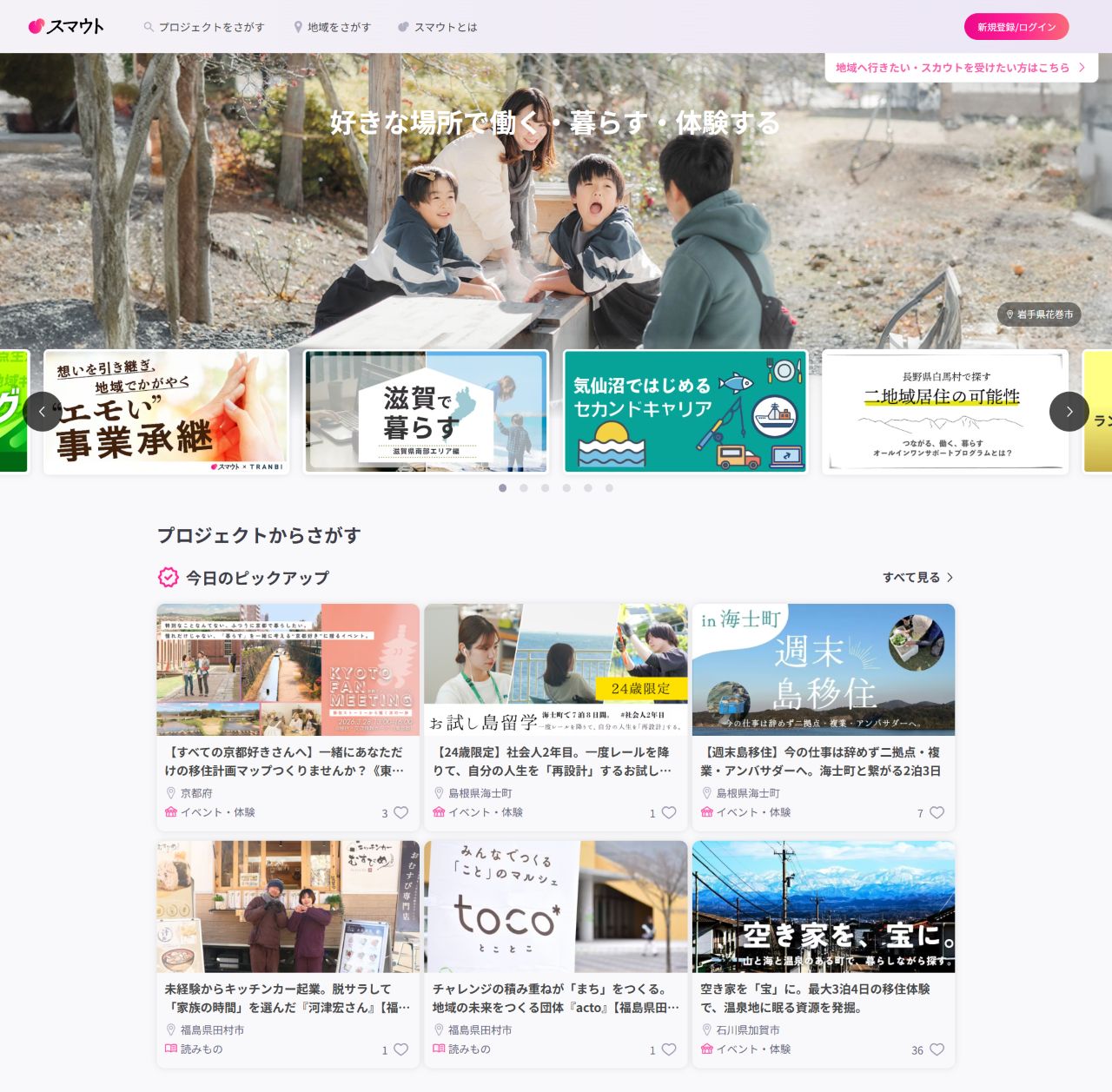 面白法人カヤックが運営する「スマウト」は、自治体や地域の企業が掲載するプロジェクトと、地域とのつながりを求める利用者をマッチングするプラットフォームだ。2018年6月のサービス開始以来、登録者は約9万人に達し、全国1,200近くの自治体や地域企業の利用実績がある。