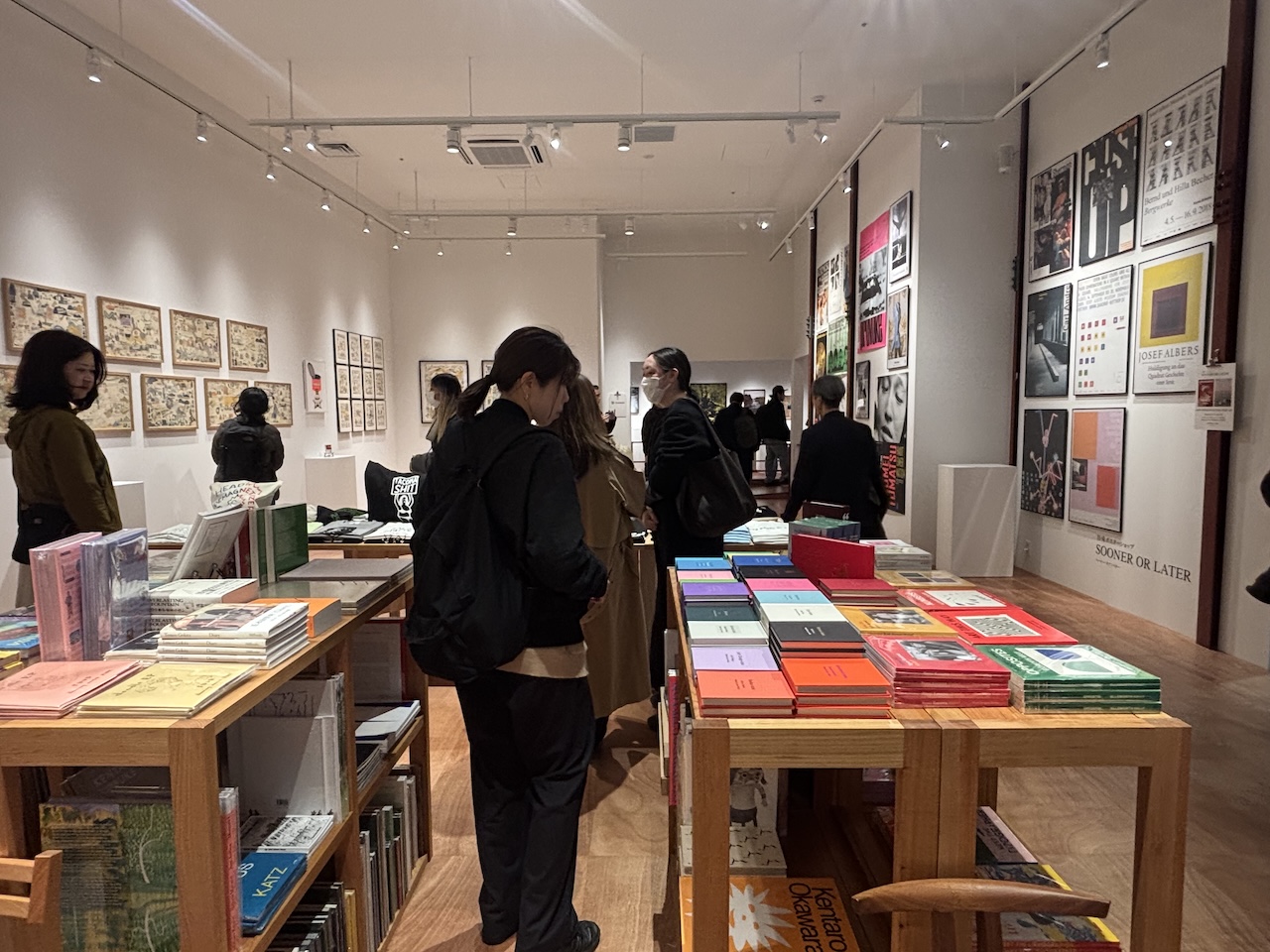 スペースは大きく3つのエリアで構成されている。中心となるのは、NONLECTUREが手がけるメインスペース。海外のアートブックやヴィンテージブックを中心にした書棚が並び、本棚と展示空間がゆるやかにつながる。
