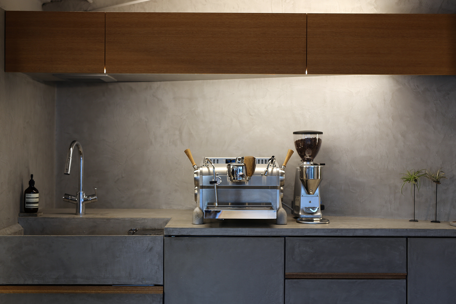 「カウンターの内部って普通あまり綺麗じゃないですよね?そこをきちんと意識できるようにあえて裏返しに作りました。ここは来客も多いので、その意識がないとダメだと思うんです。もちろん、ディスプレイとしてではなく、コーヒーを飲むために普通に使っていますよ(笑)」