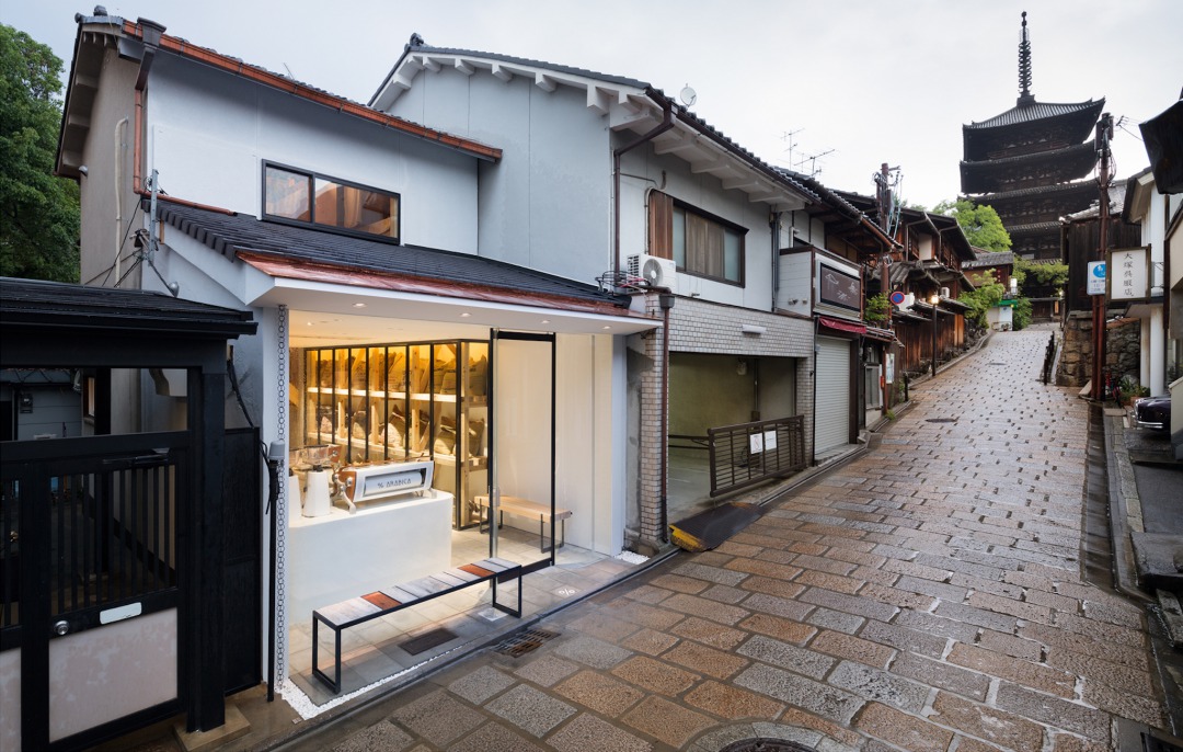 IDÉE時代からのクライアントであったアラビカのオーナーとは「京都からディテールまで世界に発信できる店をつくりたい」と1年くらい時間をかけて世界中の様々な土地を一緒に回った。その中で共に得た共通認識は、「地域に根ざした強度のあるもの」。日本にある素材・馴染みある素材で、でも「ザ・日本」「いかにも和」じゃない表現をしたい。