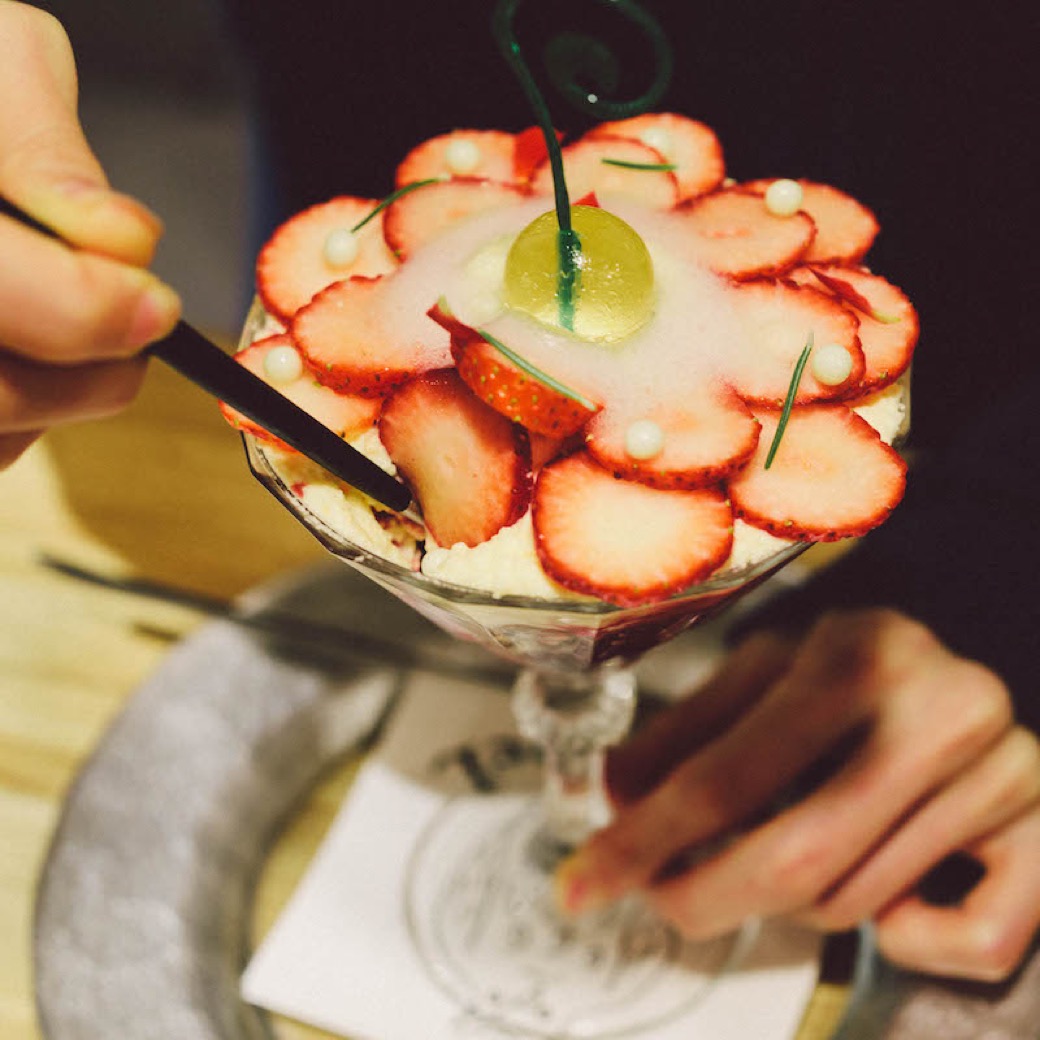札幌発の「夜パフェ」専門店。お酒を呑んだ後に「シメ」として食べてもらうパフェをテーマに、まるで芸術品のようなパフェを楽しめる。ほんのりアルコールも香る、大人のための贅沢な甘い甘い空間。