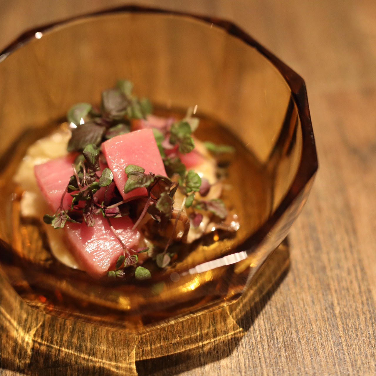 代官山駅から徒歩5分ほどの隠れ家的な日本食店。日本酒はもちろん、ワインと和食のマリアージュが楽しめる。とくに全粒粉を使ったうどんは食べるべき逸品。ランチから会食まで、使い勝手がいいお店だ。