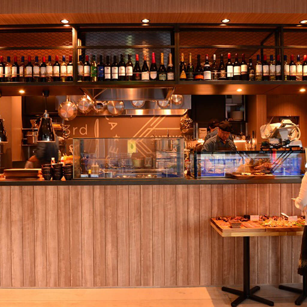 LAサンタモニカのフードスタイルを提供するレストラン。氷温熟成肉のステーキを始め、本格的な肉料理はラインナップが豊富。オーダー後に肉をサンドして焼き上げるパニーニはテイクアウトもOK。野菜は神奈川県産を中心に旬なモノを揃えている。