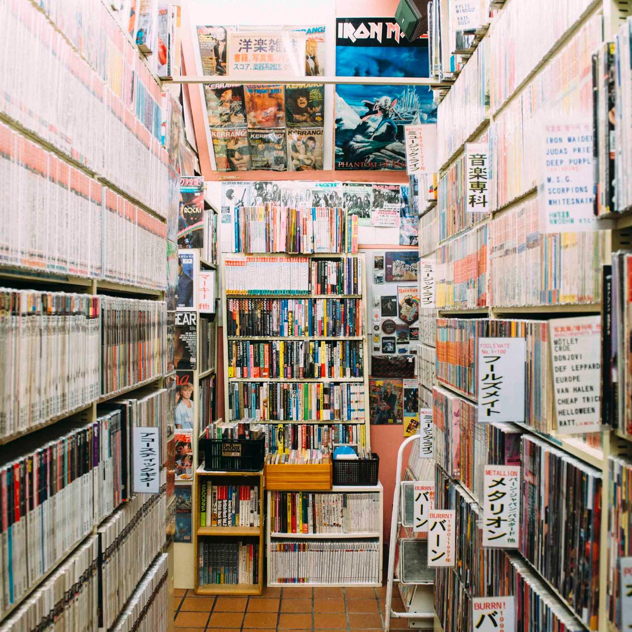 音楽を中心としたサブカルチャー系の専門書店。ロッキンオンなどずらりと並んだバックナンバーは圧巻。全国のロックンロールファンが集まる店としても知られている。