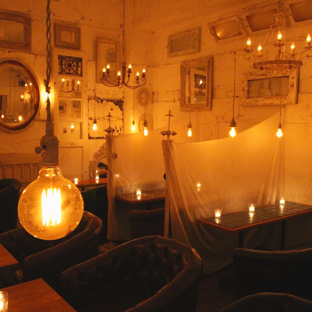 幻想的な映像を映し出すプロジェクションマッピングが楽しめるユニークな銀座のカフェダイニング。4K画質のプラネタリウムが天井に満天の星空を映し出す「メインフロア」をはじめ、趣向の異なる3つの部屋で食事やお酒が楽しめる。