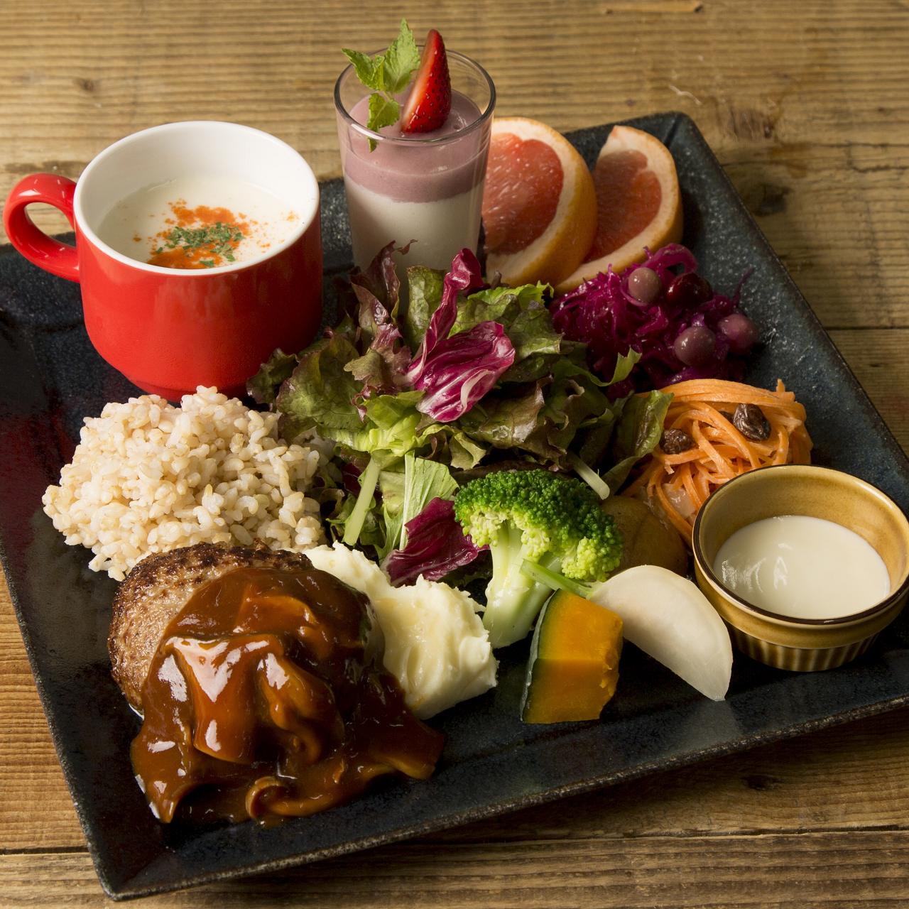 渋谷のファッションエリア・神南にある大箱カフェ。テラス席があり開放的な1階と落ち着いた雰囲気の地下1階があり、あわせて約160席。ランチ、ディナー、カフェタイム、いつでもボリューム満点のお料理と多彩なドリンクが楽しめる。