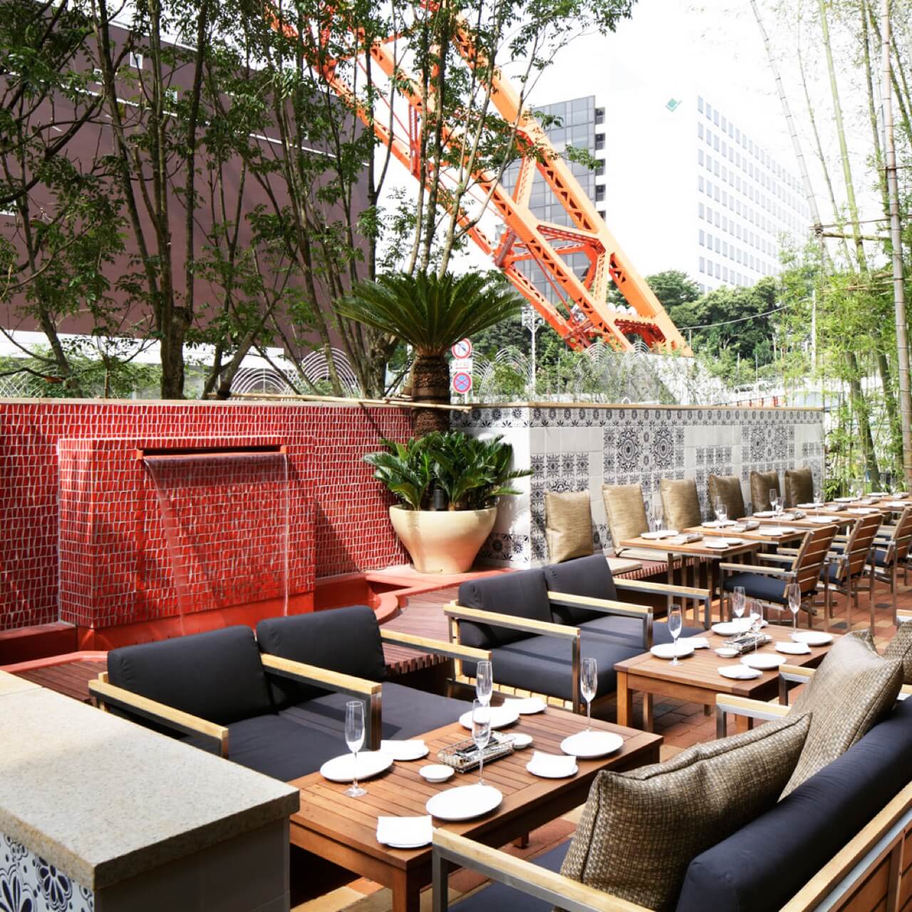 東京タワーの麓にあるダイニングレストラン。テラスからは美しい東京タワーを圧倒的なスケールで楽しむことが出来る。