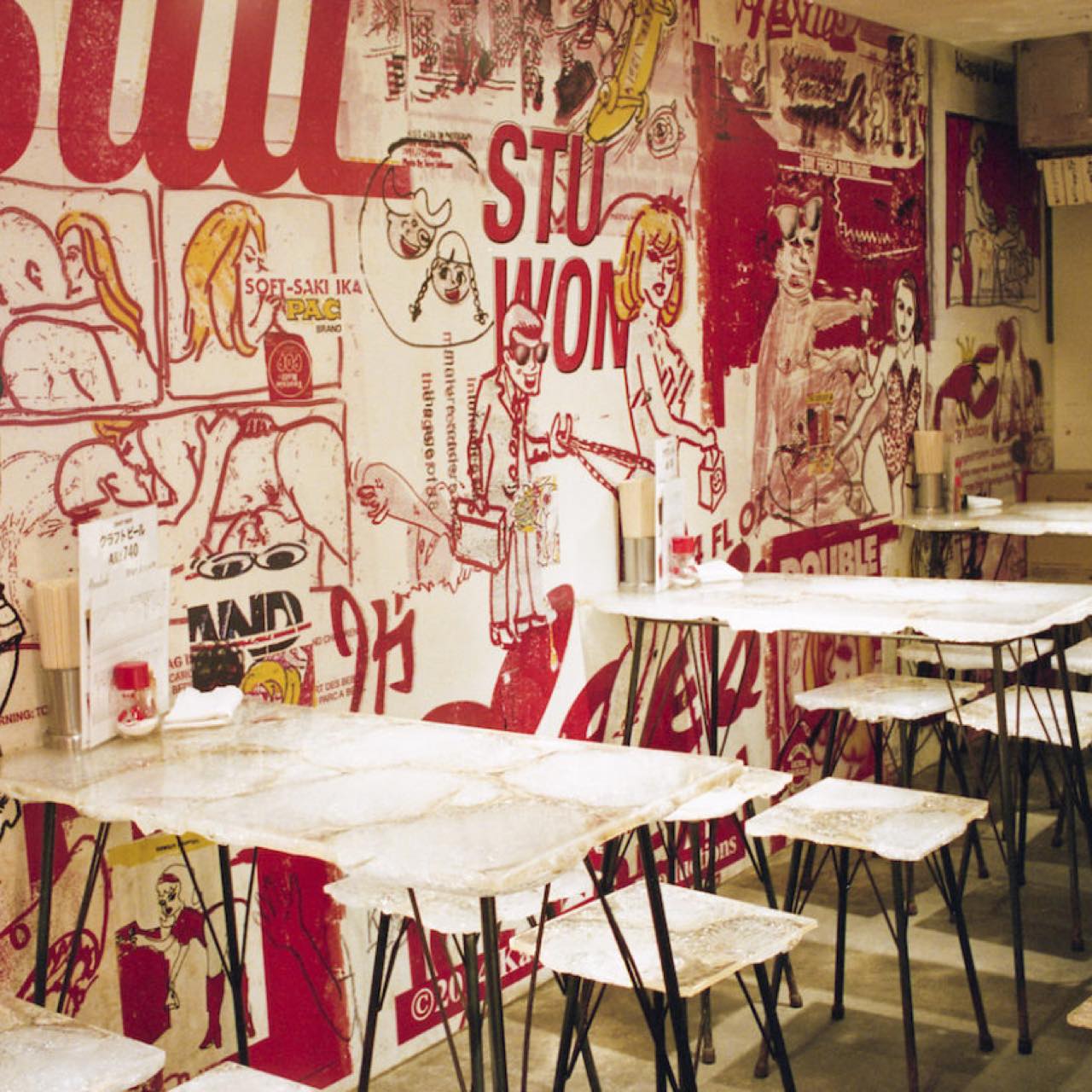 吉祥寺駅より徒歩1分、ハモニカ横丁内にある焼き鳥屋。新国立劇場を手がけた建築家、隈研吾氏による内装、テリージョンソン氏の描いた壁一面のイラストが話題。焼き鳥の他にはもつ煮も人気。