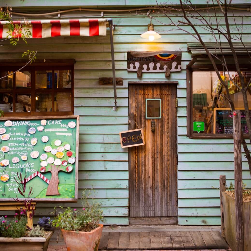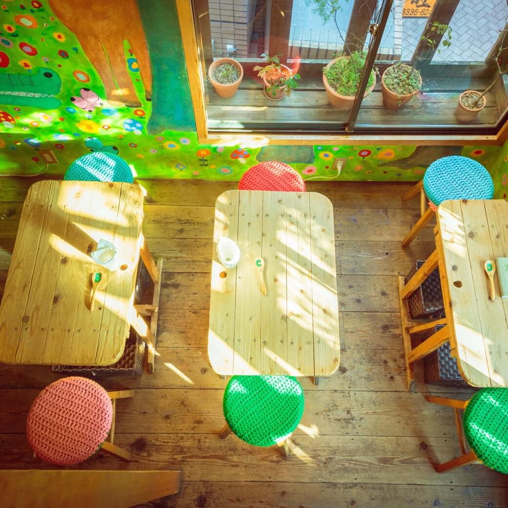 高円寺のギャラリー併設カフェ。まるでおとぎ話の中に入ったかのような可愛らしく不思議な世界観は、外観も内装も、そして料理にも徹底されている。人気は自家製のスイーツで、見た目も可愛らしく季節限定のメニューもある。