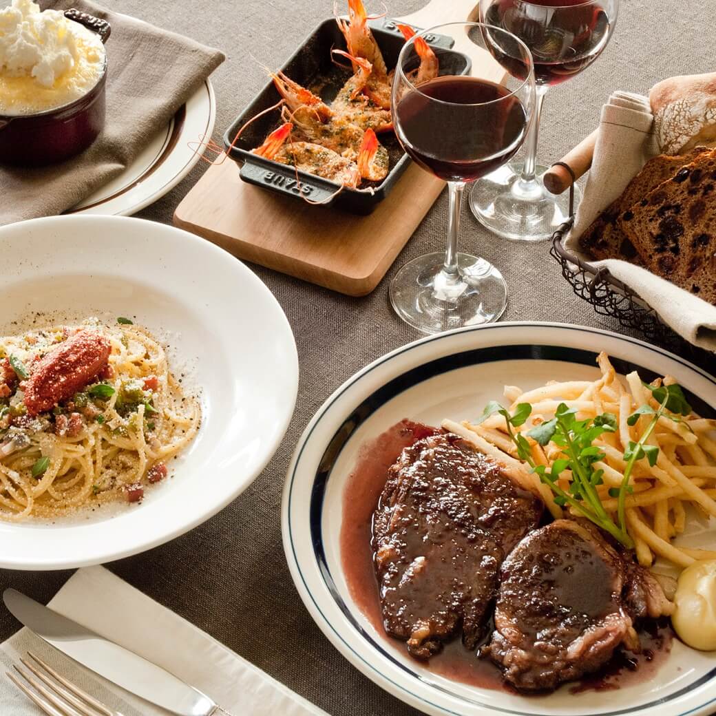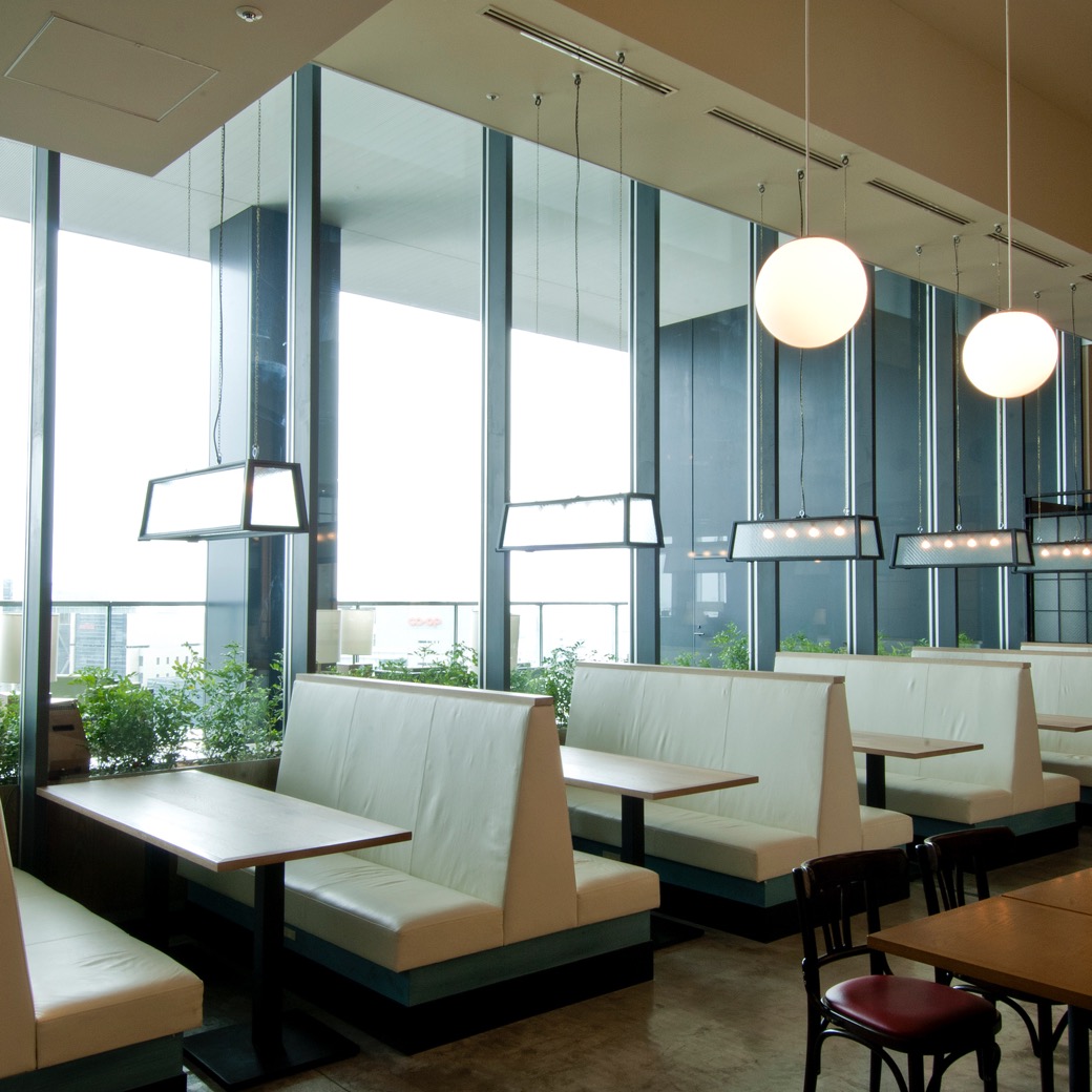 ネオトラットリアをコンセプトとしたカジュアルイタリアン。天高6mの開放的な店内には、広々としたBOX席から、高層階から夜景を一望できるソファー席のテラスも。打ち合わせやランチ、ディナーなど様々なシーンで活用できる。