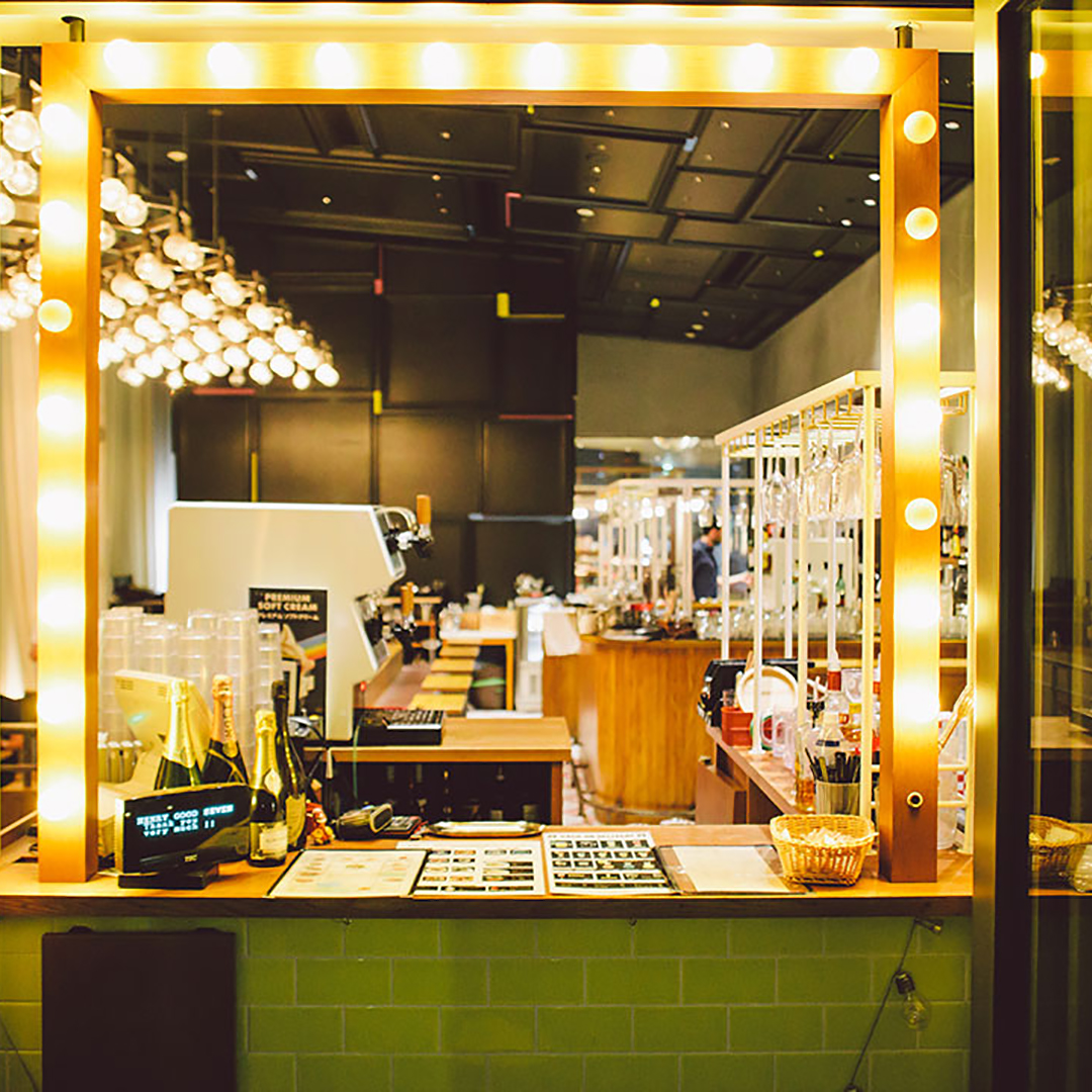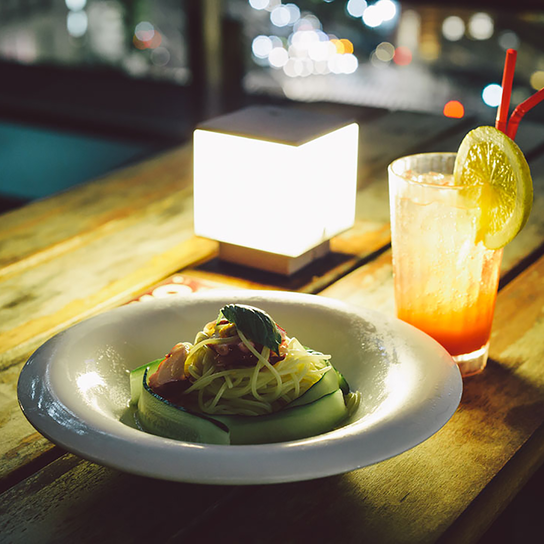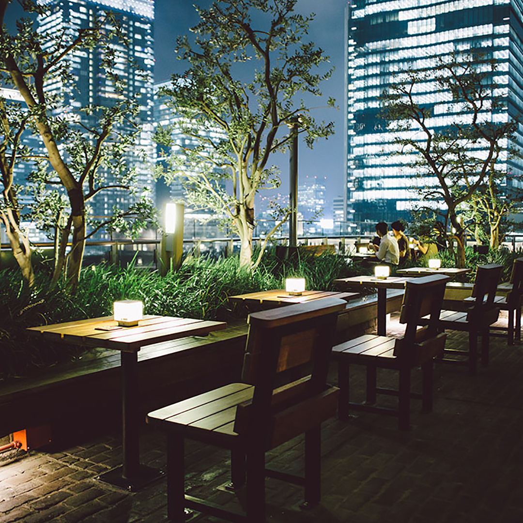 新丸ビル7F (marunouchi)HOUSE 内にあるカフェダイニング。深夜まで営業しているカフェは貴重。甘いものからお酒、しっかりごはんまで対応するユーティリティなカフェ。テラスで食べられる専門メニューあり。