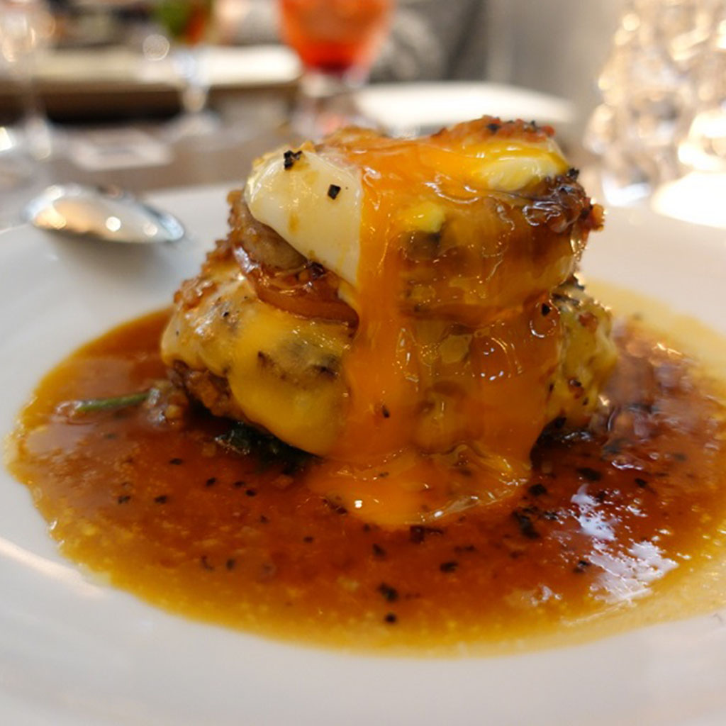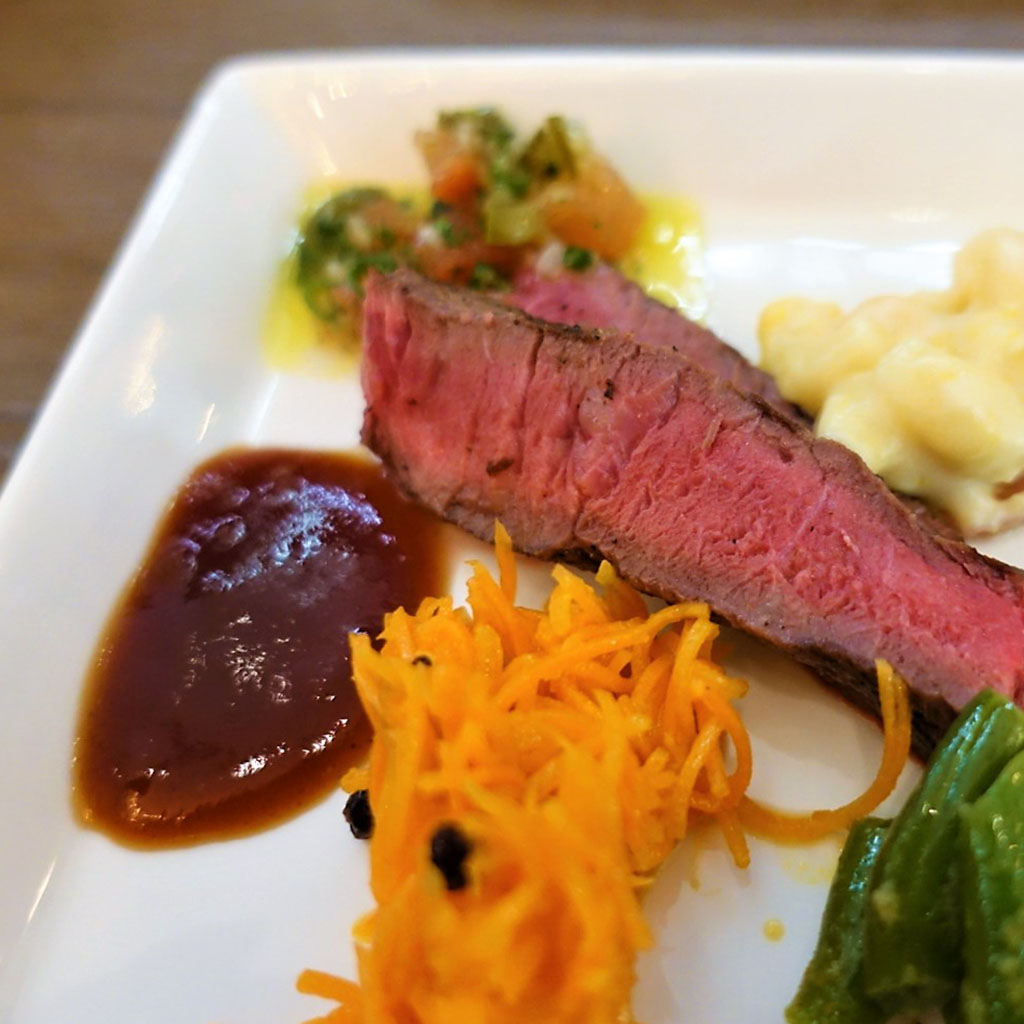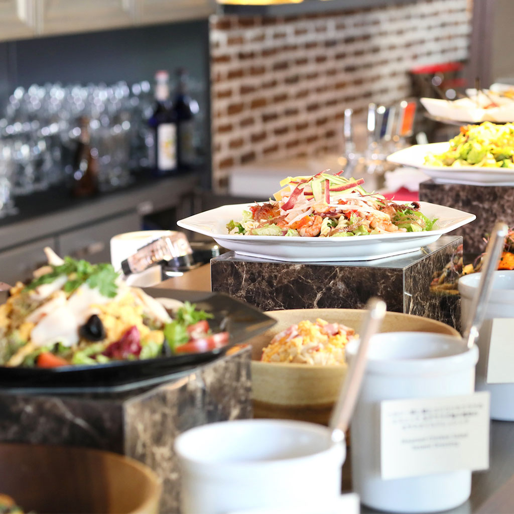 ランチは特製バーガーやグリルミートなどのメインが選べるプリフィックススタイル、ディナーはシンプルな調理方法で仕上げたグリル・ローストとともに、クラフトビールやワイン、カクテルが楽しめる。本場NYのような洗練された内観が魅力。