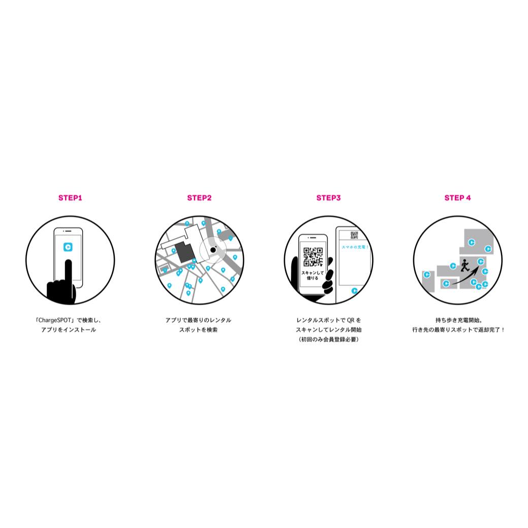 「どこでも借りられて、どこでも返せる」をコンセプトに2018年4月から開始したモバイルバッテリーのシェアリングサービス。アプリでバッテリースタンドのQRコードをスキャンするだけでレンタルできる。専用アプリのほか、LINE公式アカウントからもサービス利用が可能。