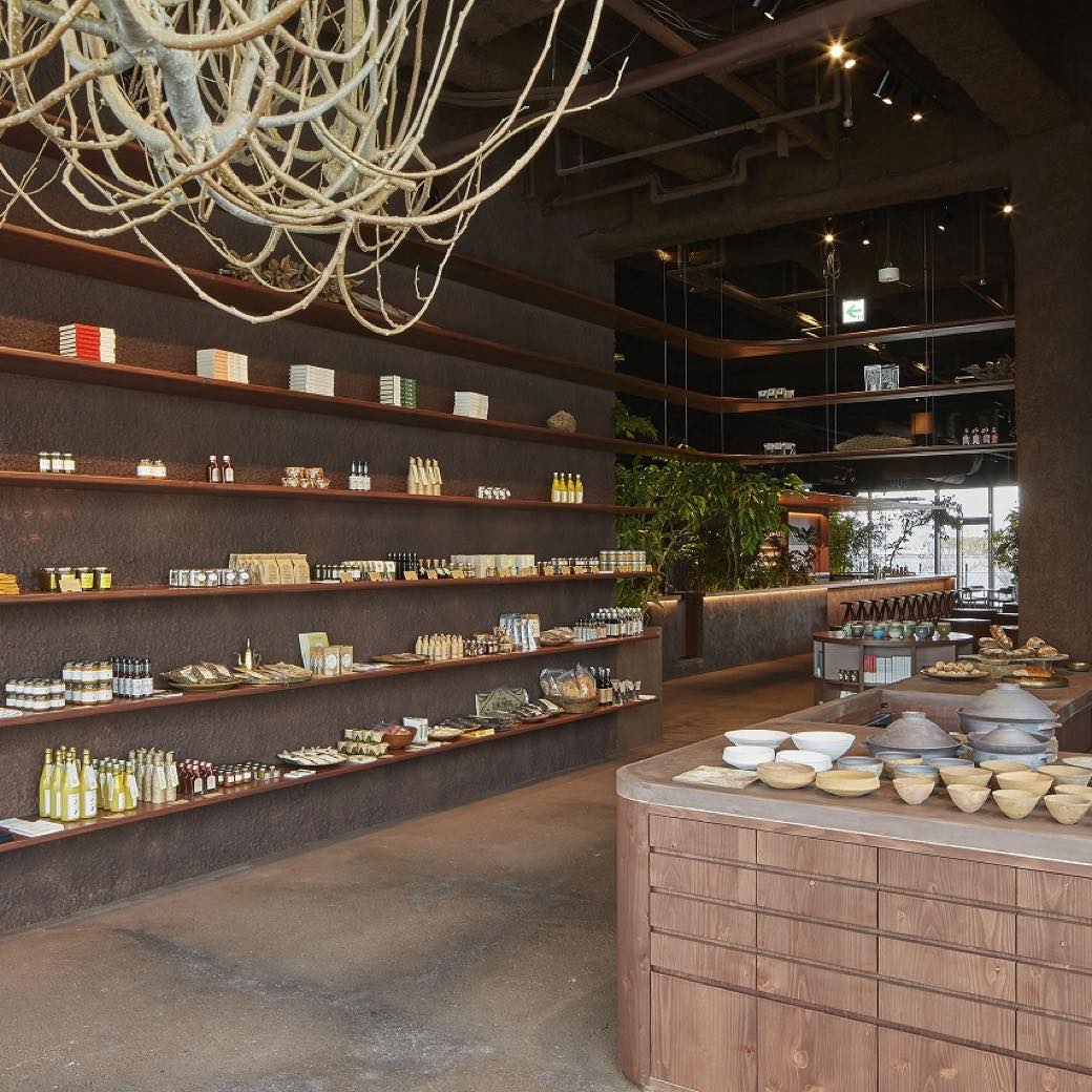 田根剛さんが設計した“食”にまつわるフロア。晴れた日は光が入ってまるで屋外のような空間なんです。Eatripのグロッサリーストアは必ず何か買ってしまう、感性を刺激する場所。手土産にちょうどいいものも多くて重宝します。