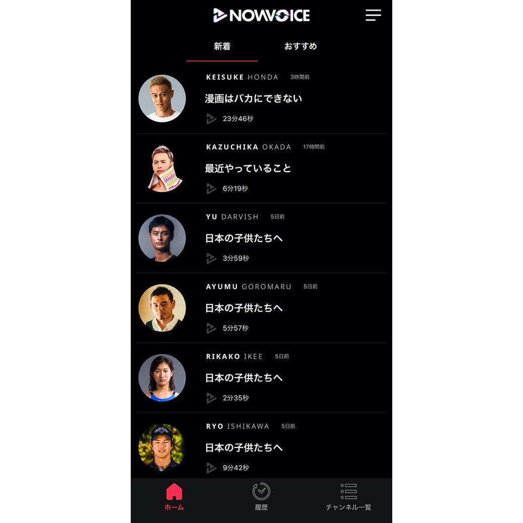 サッカーの本田圭佑選手を中心に立ち上げた、月額900円(税抜)のプレミアム音声アプリ。リリース時に公開されたのは、スポーツ各界を代表する選手の声。テニスの錦織圭さんやラグビーのリーチマイケルさん、マラソンの大迫傑さん、野球のダルビッシュ有さんなど、日々チャレンジを続けるトップランナーの力強いメッセージは、あなたの人生にも影響を与えてくれるかもしれない。