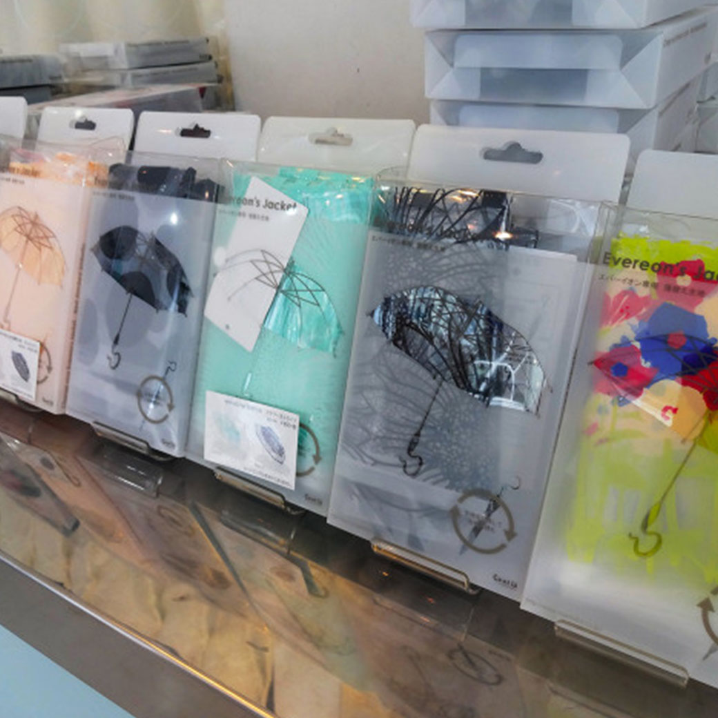 「壊れたらゴミへ」の傘ではなく、丈夫で長く使える素材やリサイクル可能な素材、着せ替えできる傘生地などを使った傘を販売している。エコなだけでなく、アーティストとコラボしたお洒落な傘などデザインも豊富。「脱・使い捨てビニール傘」をしてみては?