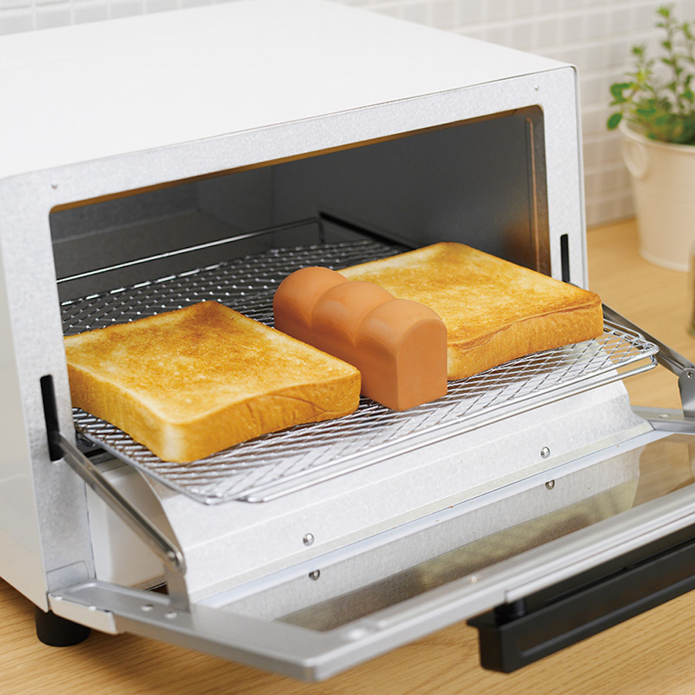 生活雑貨メーカー「マーナ」からリリースされた、大好評の「トーストスチーマー」。「トーストスチーマー」を20秒程度水に浸し、パンと一緒にトースターに入れて焼くだけ。スチーマーが温められ蒸気が発生することによってトースター庫内の湿度が上がり、外はカリッ、中はモチッとしたトーストに焼き上がるというしくみである。スチーマー付きの高級トースターと比べるとかなりアナログな方法だが、1,000円程度のプロダクトが同じ機能を満たしてくれるならおトク感も否めない。