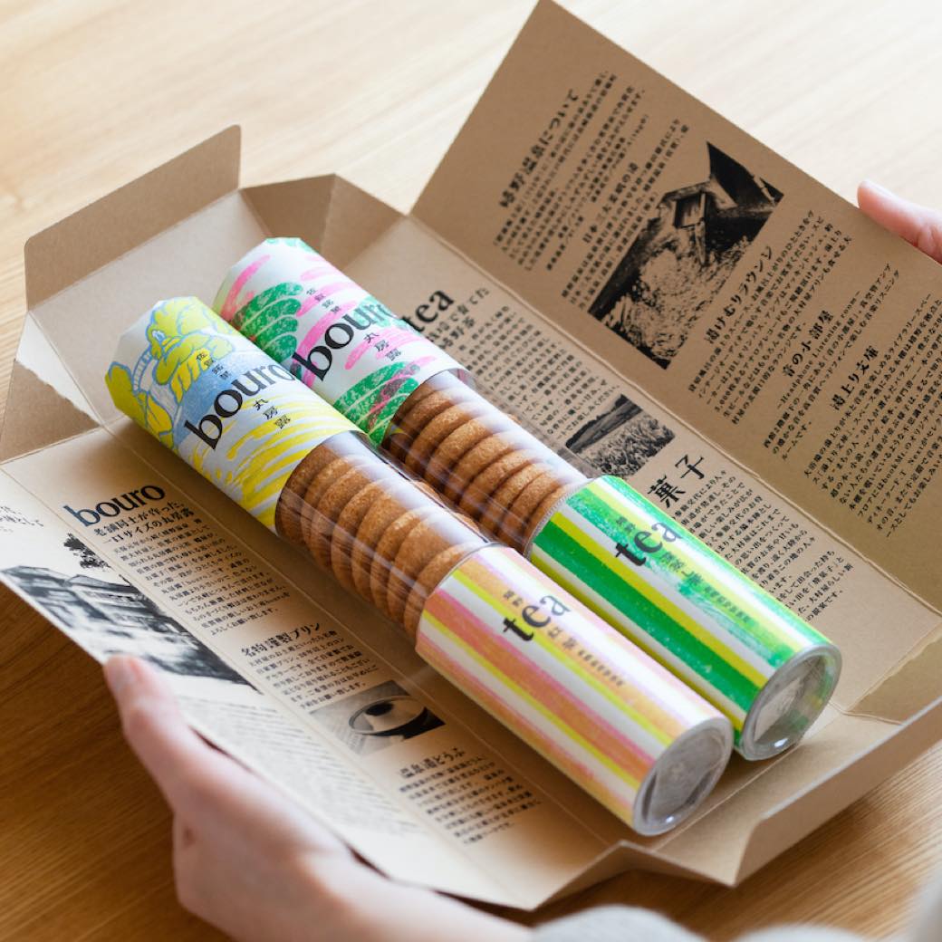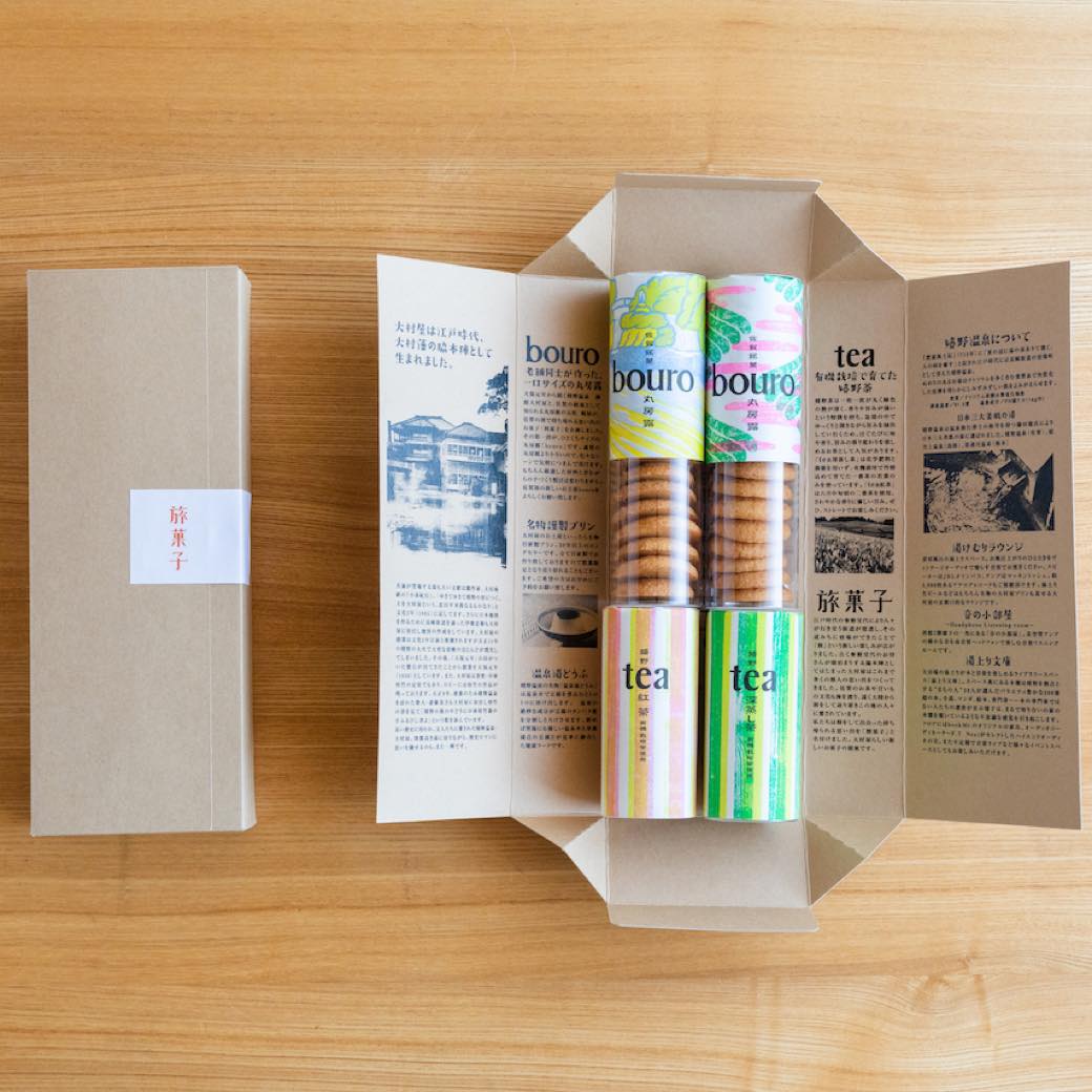 佐賀・嬉野温泉の「旅館大村屋」が手掛けたギフトボックス。ひとくちサイズの丸房露「bouro(ボウロ)」と、嬉野茶がセットになっている。箱の内側が読み物になっており、旅館の歴史や温泉の成分、旅館での過ごし方などが書かれている。自宅にいながら佐賀県の温泉に思いをはせることができるのだ。