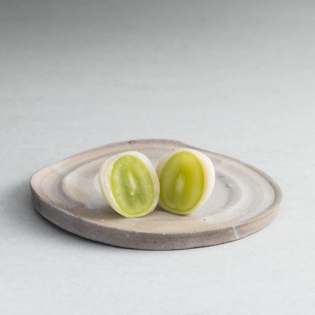 フルーツ大福で話題の「弁才天」が銀座に進出。甘さ控えめの薄皮薄餡とフルーツのバランスが絶妙で、どんなフルーツでも果物本来のジューシーさ、香り、甘みや酸味が楽しめるという。素材にもこだわり、国産100%の羽二重粉を使用。フルーツは早朝5時に市場で仕入れた新鮮なものを包んでいて、旬をいっぱいに感じられる一品だ。