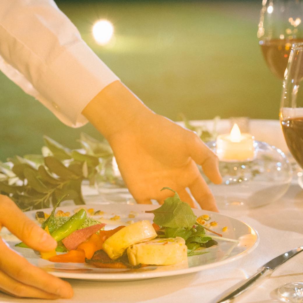 品川シーズンテラスにて、芝生の上での映画鑑賞や上映作品にちなんだ会場演出、多彩なフード&ドリンクが楽しめる恒例の野外映画イベント「Shinagawa Open Theater」。これまでのべ6万人以上が来場し、オープンエアの解放的な空間で映画を楽しめるイベントだ。今年の上映作品は、2017年に公開されたミュージカル映画『LA LA LAND』。夢見る若者が集うロサンゼルスを舞台に、女優志望のミアとピアニストのセバスチャンによる、甘くも切ない恋の模様や苦い現実を描いたラブストーリーだ。胸を打つ物語とそれに寄り添う音楽とダンス。そんな魅力が詰まった作品を基にしたスペシャルディナーは、印象的な場面をイメージした料理をストーリーの進行に合わせて提供される。