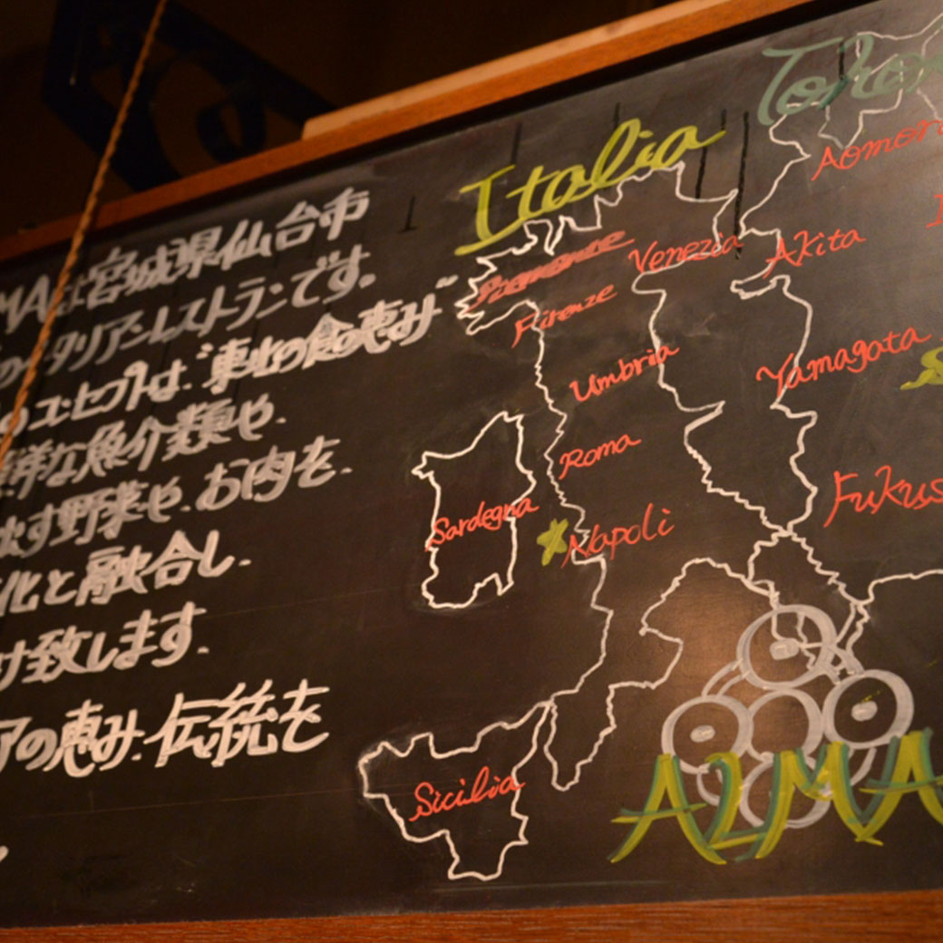 恵比寿駅前の喧騒からは離れた場所にある、宮城県仙台発祥のイタリアン。毎日東北の漁港から届く新鮮な魚介類をはじめ、野菜やお肉を使った独自のスタイルの料理と、郷土料理を追求した手打ちパスタが自慢。