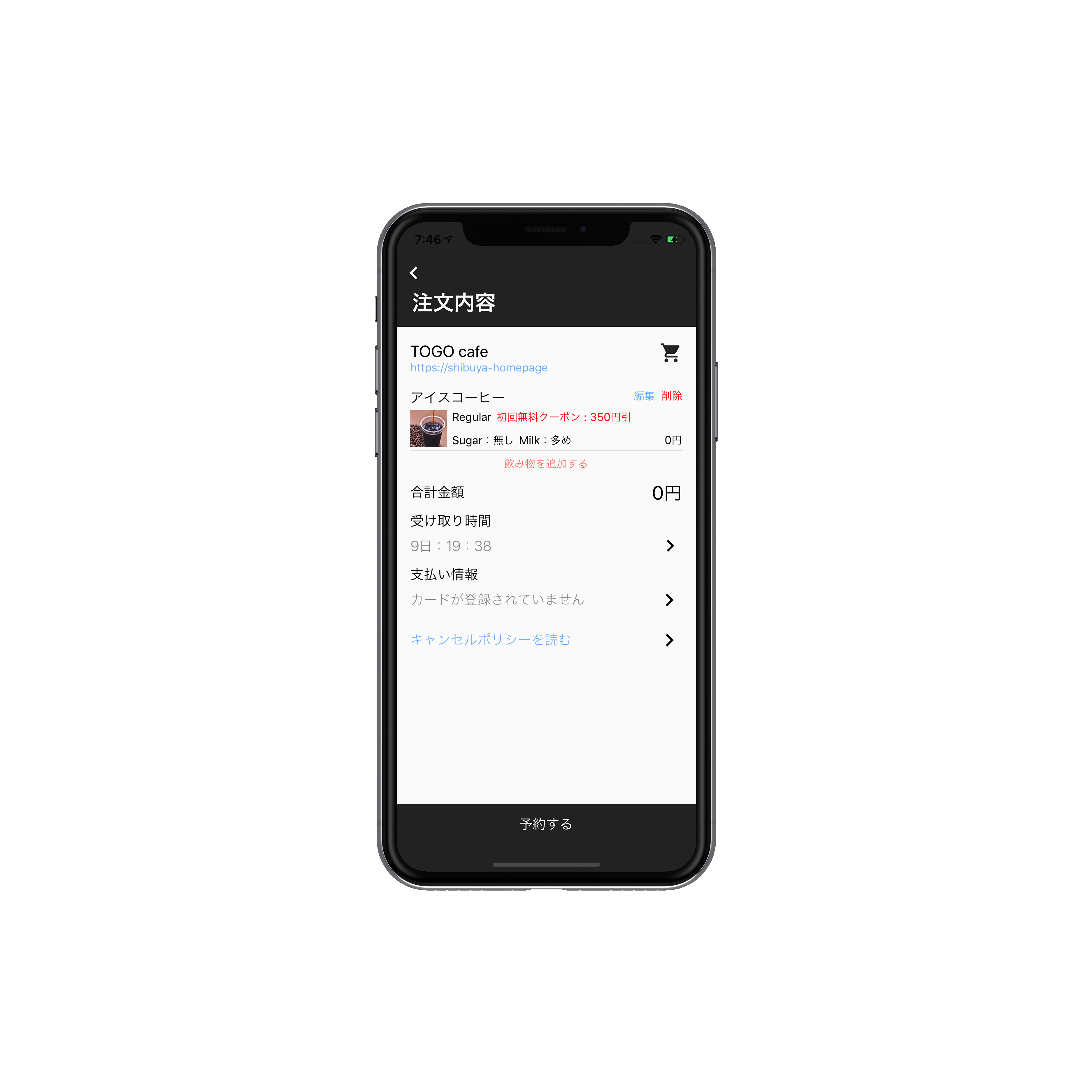 現在地から近いカフェを検索し、テイクアウトコーヒーの事前注文決済を行うことができるスマートフォンアプリ。最短3タップで注文が完了し、店頭では並ばずコーヒーを受け取るだけというシンプルさ。出勤前やランチ後などにコーヒーが飲みたくなったらぜひ。