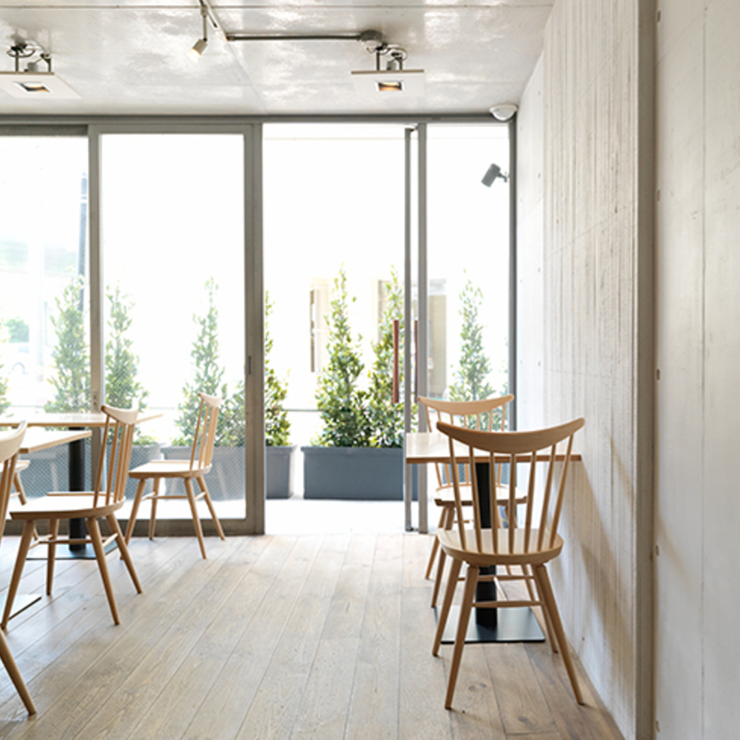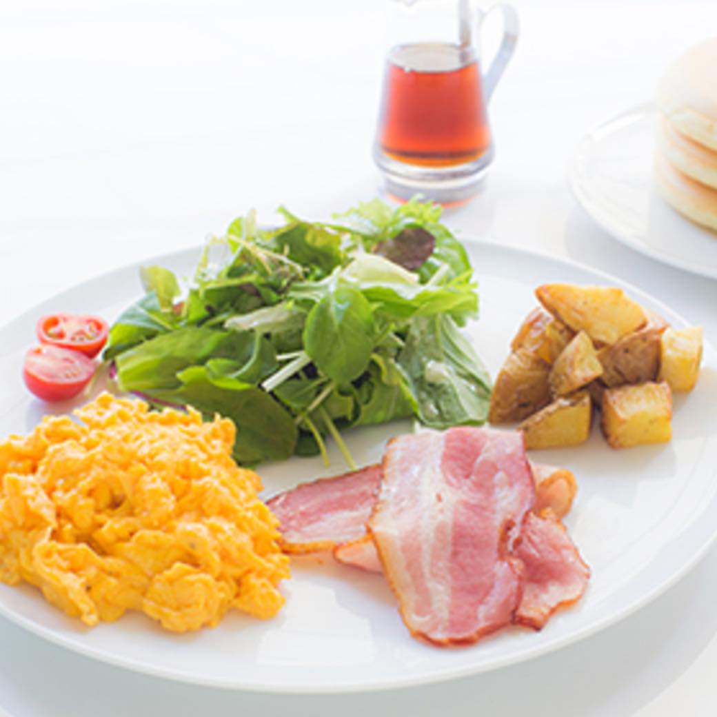 パンケーキを中心としたメニューは安心安全な食材にこだわり、県外からの客も絶えない人気店。エッグベネディクトやオムレツ、キッズメニューも提供。白と木材を基調にしたシンプルモダンな店内には犬同伴可能な席もあり、行くとつい笑顔になる穏やかな雰囲気。